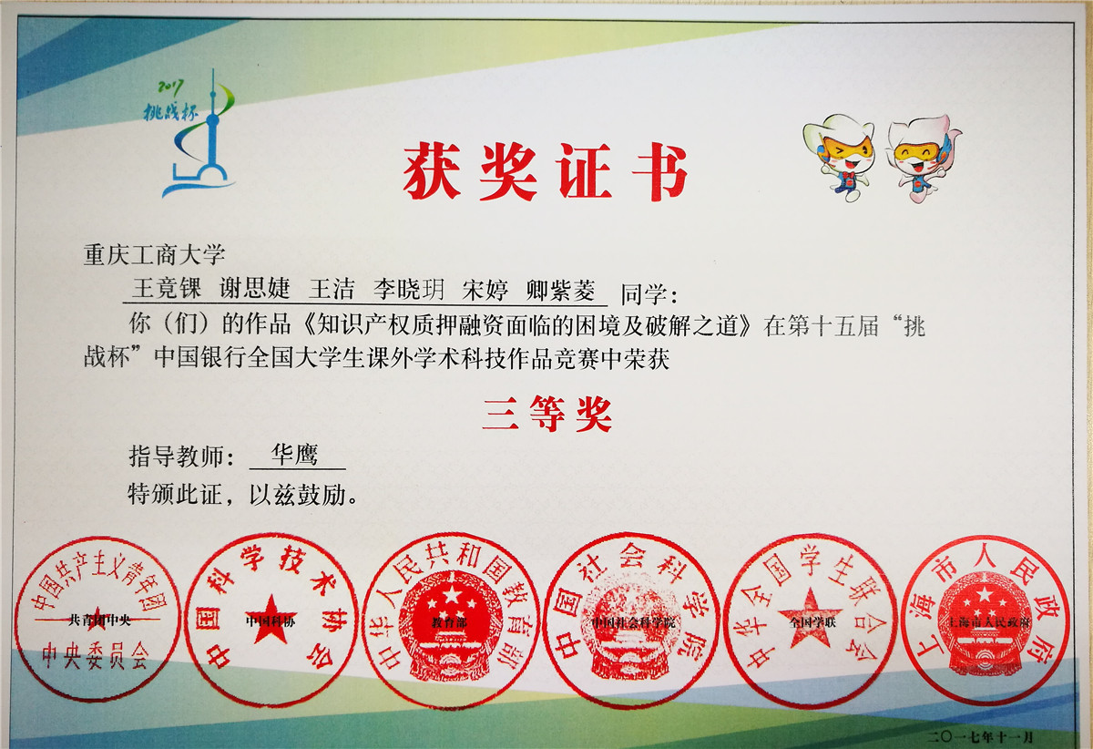 学校历来重视此项赛事,自去年11月正式启动校内竞赛以来,在校团委、研工部的认真组织下,各学院大力发动、积极推荐,共上报作品185件,比上一届增长54件,增幅约达30%。经校赛选拔后推选出19支队伍参加重庆赛区复赛,在市赛中获奖取得特等奖3项,一等奖6项,二等奖5项,三等奖1项的好成绩,获奖数比上一届增长10%。据悉,重庆各高校共报送全国赛作品35件(我校3件),参与现场决赛作品20件(我校2件)。最终,全市高校在全国决赛上获一等奖1项(西南大学),二等奖8项(重庆大学2项,西南大学2项,重庆邮电大学1项,2138CC太阳集团1项,第三军医大学1项,后勤工程学院1项),三等奖24项。