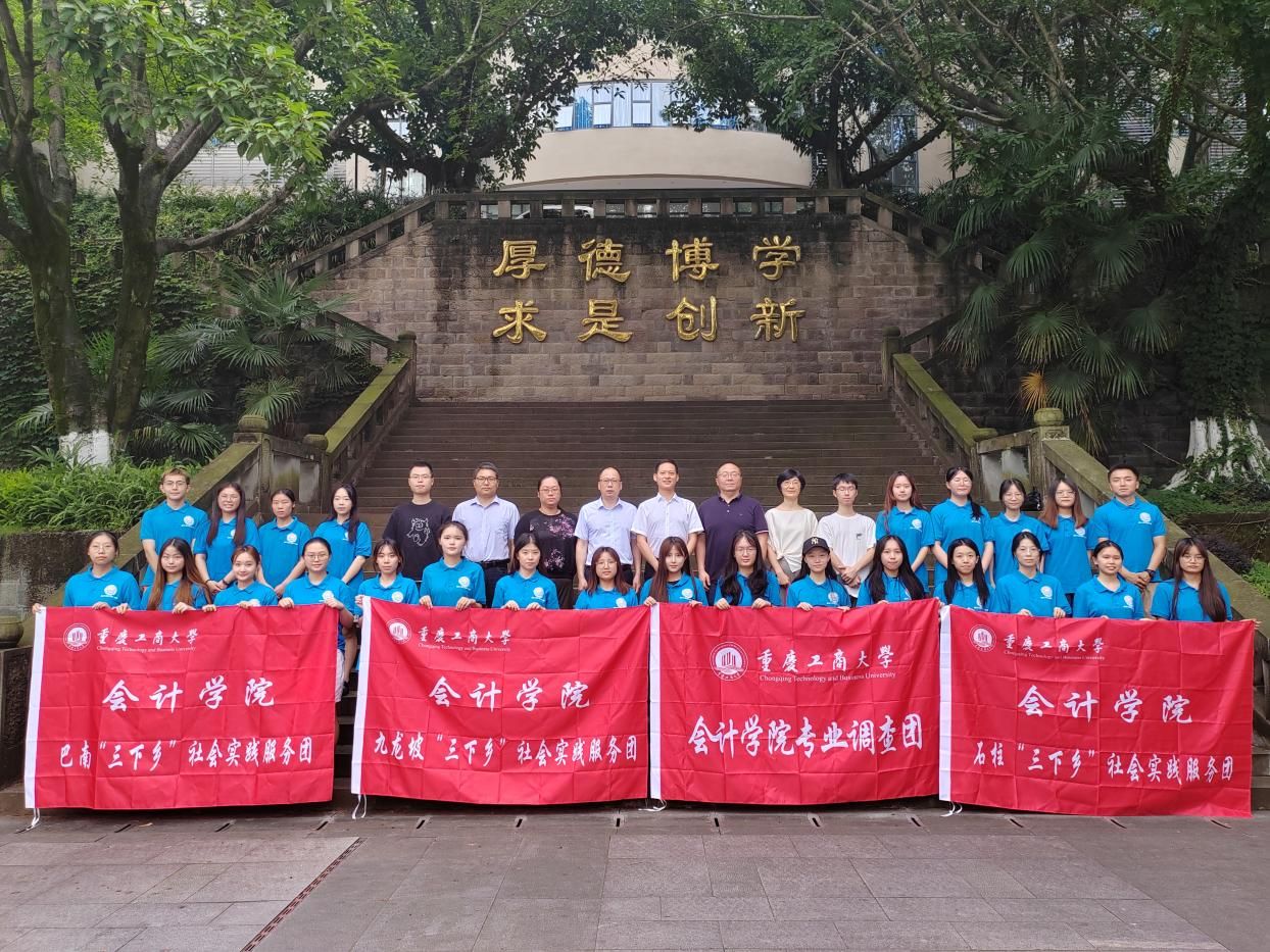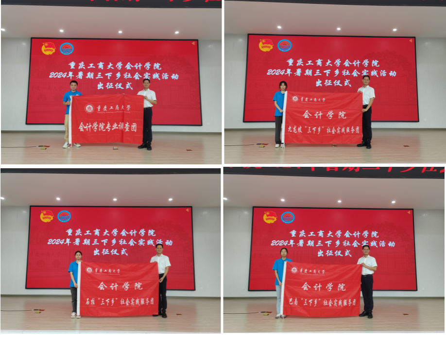 7月3日下午,会计学院于我校南岸校区明德楼1019报告厅举办会计学院2024年暑期“三下乡”社会实践活动出征仪式。会计学院党委书记邓德敏、院长钟廷勇、党委副书记郝颖、分团委书记彭文涛、指导老师王世杰、孙回回、袁利华、吴金珂、郭秋林和五支市级团队的本硕32名成员参与此次出征仪式。出征仪式由郝颖主持。