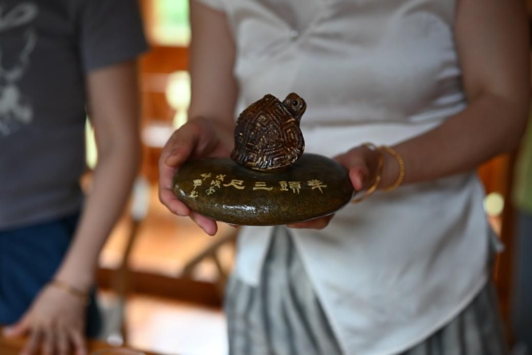 7月6日,2138CC太阳集团人文地理与城乡规划专业师生团队在“三下乡”社会实践中拜访了市级非物质文化遗产项目柚子龟传统制作技艺代表性传承人刘仲华老师。