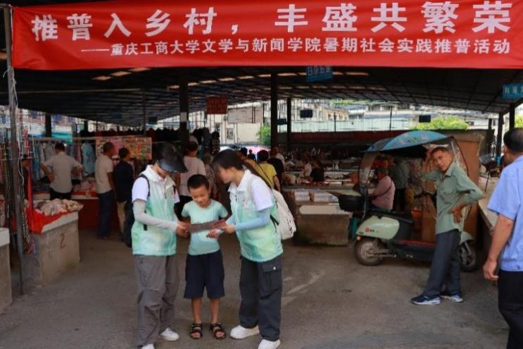 为积极响应国家关于推广普通话的号召,深入贯彻落实党的二十大关于“加大国家通用语言文字推广力度”的决策部署,提升农村地区和特殊群体的语言沟通能力,7月7日上午,文学与新闻学院“文小闻”乡村振兴促进团前往巴南区丰盛古镇菜市场开展暑期普通话推广活动。