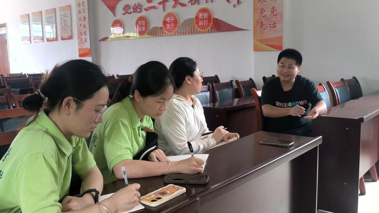 7月8日,师生团队与夹滩社区党委书记肖平、综合服务专干黄家宏及综合服务专干何敏等工作人员进行了深入交流与访谈。肖平向师生团队介绍了夹滩社区闲置宅基地盘活利用的设想,并提出了民宿景观设计的总体需求;何专干向师生团队介绍了夹滩社区闲置宅基地的具体情况;黄专干对民宿选址与院落景观设计提出了需求,希望团队能设计出与当地村貌相适宜且有创意的民宿。