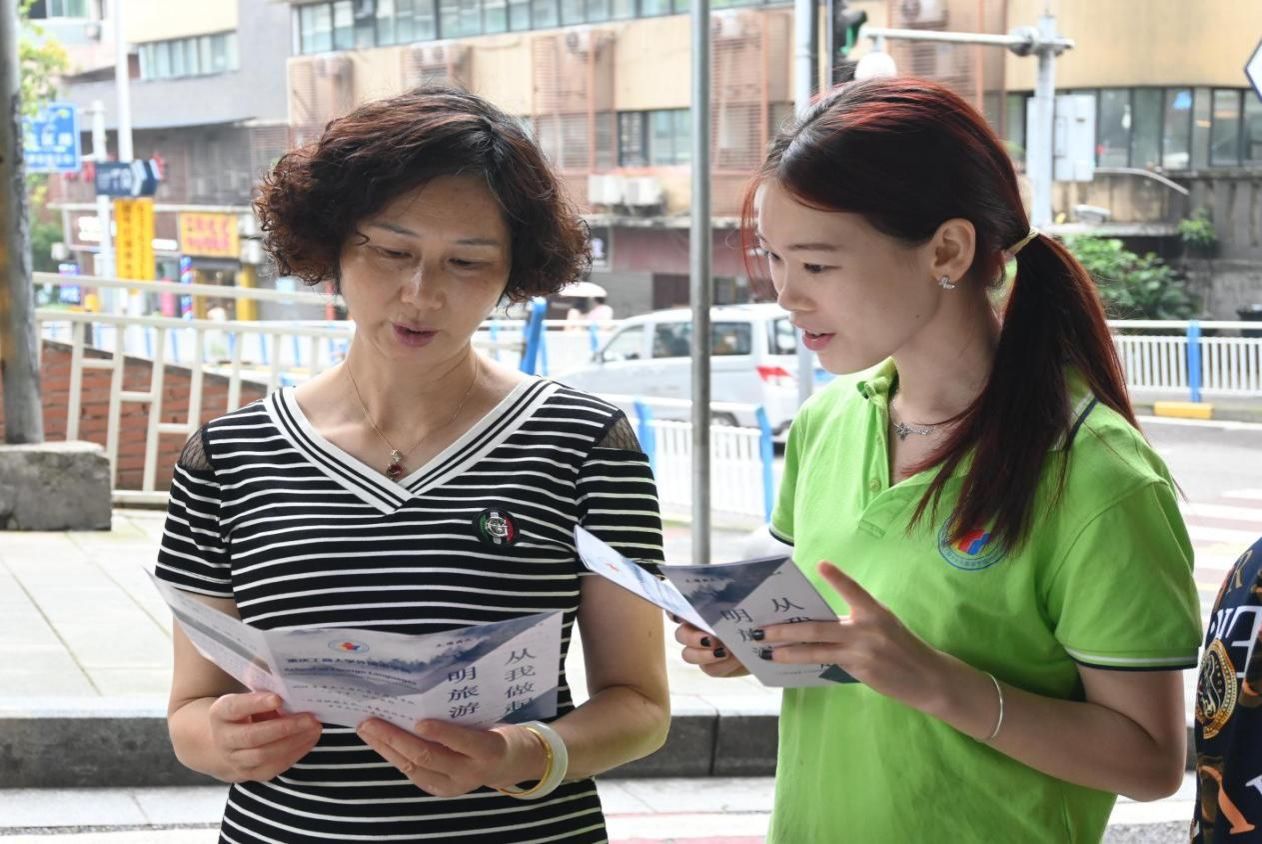 随着经济的快速发展和人民生活水平的提高,旅游业已成为一项重要的民生和经济活动。然而伴随着旅游业的繁荣发展,一些不文明的旅游现象也时有发生,如乱涂乱画、乱扔垃圾、不尊重当地风俗习惯等,这些行为不仅损害了个人的形象,也影响社会的声誉。为进一步提升国民的文化素质,树立正确的旅游观,更好地践行社会主义核心价值观。7月4日,外国语学院暑期“三下乡”文明旅游宣传活动在渝中区大溪沟街道人和街社区顺利举办。本次活动以“倡导文明旅游,传递社会正能量”为主题,将文明旅游宣传活动和文化课堂相结合,进一步提高居民的文明旅游意识。