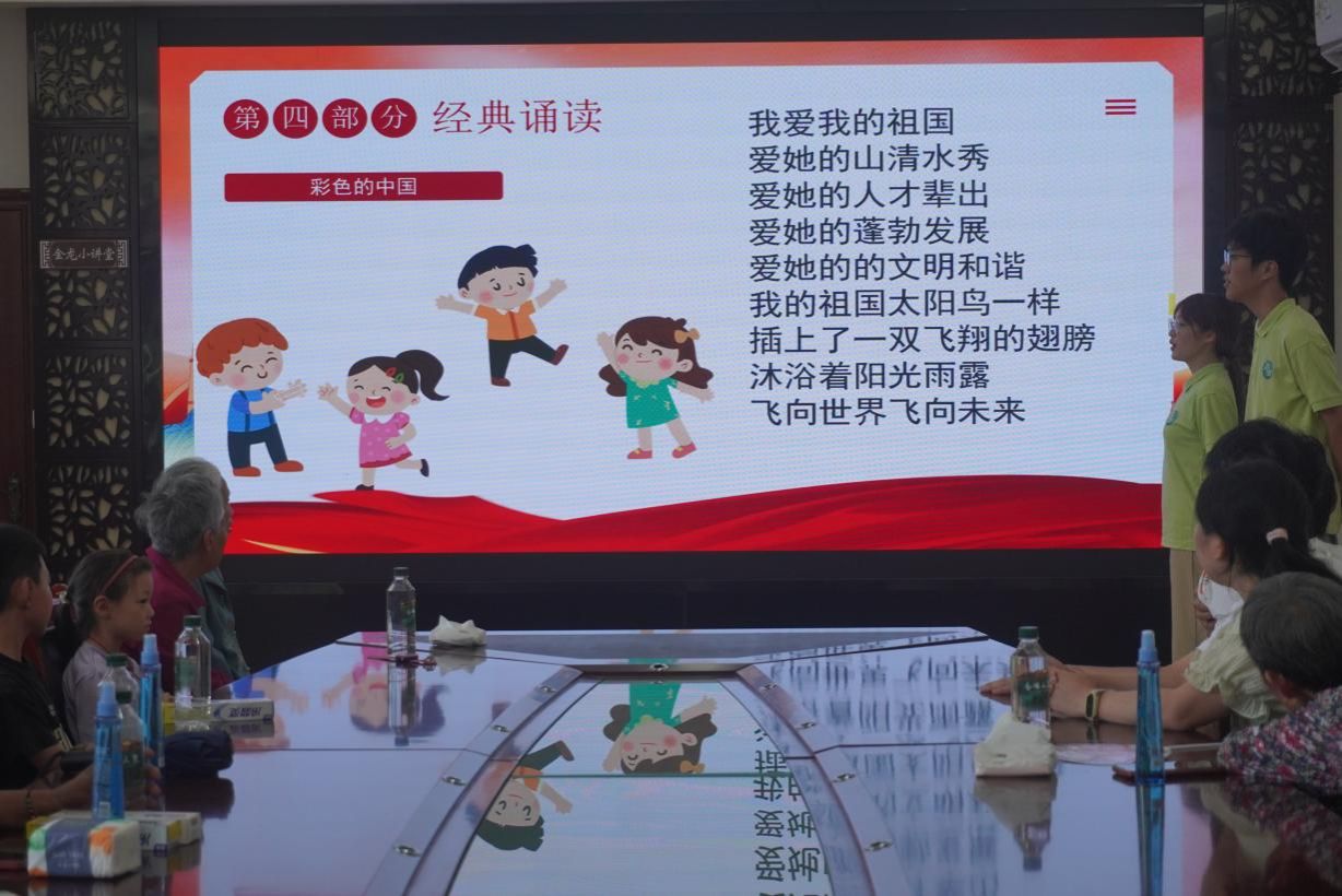 活动在深情的经典诵读中升华。《乡愁》中绵长的思念,《彩色的中国》里壮丽的画卷,在村民与实践团成员们的朗朗诵读声中流淌,普通话承载的家国情怀与乡土眷恋在此刻交汇共鸣。