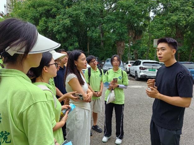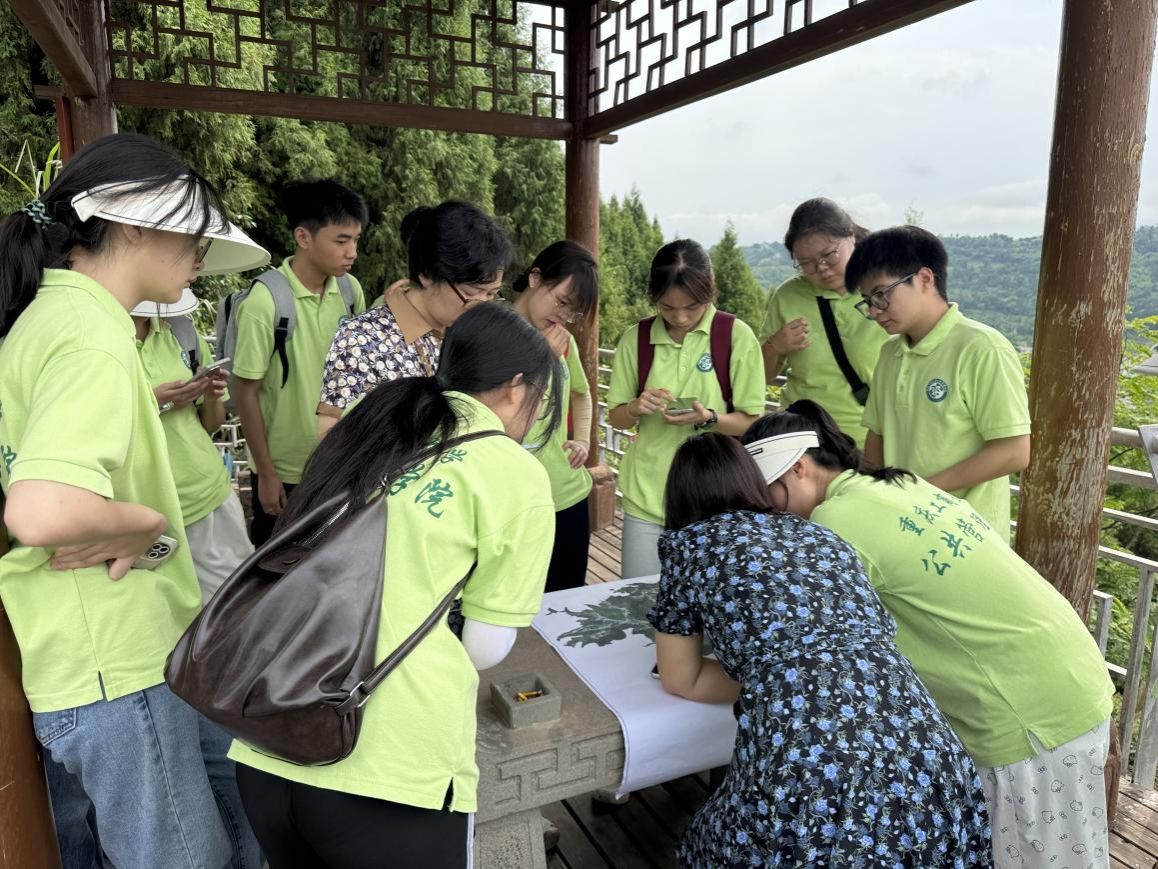 调研中,和平村党支部邱志洪书记向 “逐梦田野” 实践队解读 “稻田 +” 产业规划及农夫夜市、康养基地等项目设计;刘燕副书记带领队员踏勘情侣桥、观景台等节点,描绘 “农文旅融合” 蓝图。惜字阁村支书姜捷恒则以姜家大院为切入点,讲述大足石刻技艺传承脉络,带领队员感受非遗魅力,并介绍海棠文化渊源与产业转化路径,为文化活化提供素材。