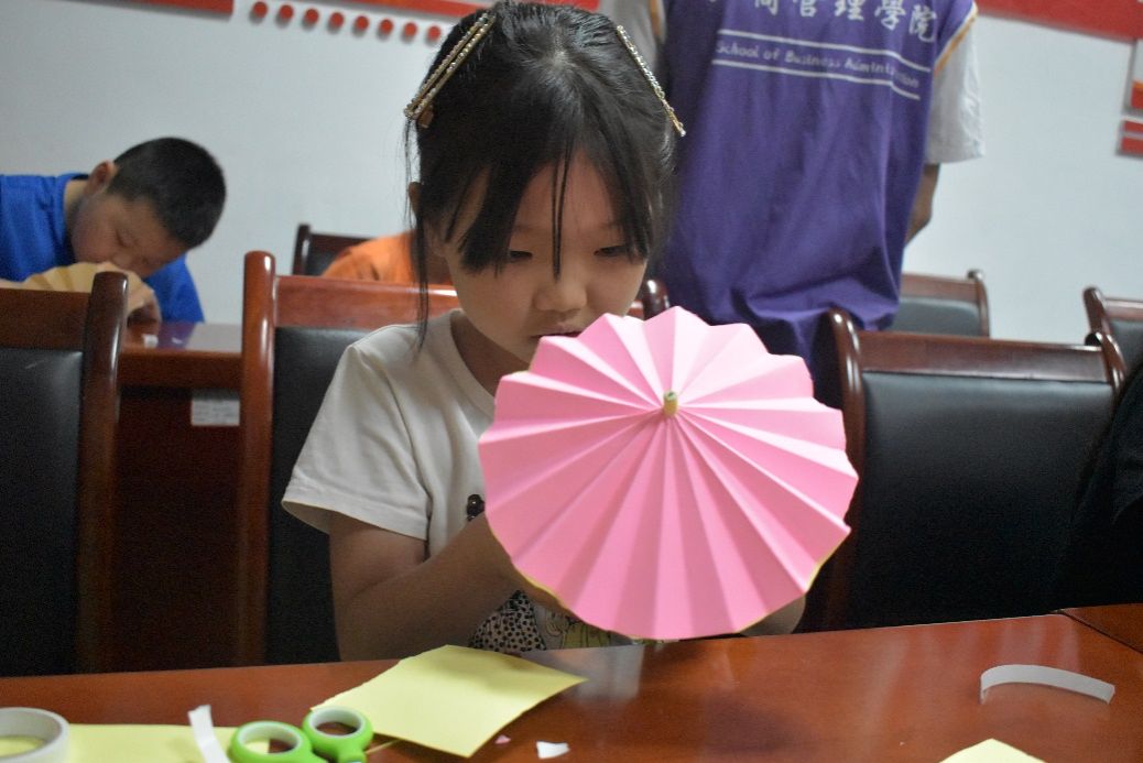在活动前,研行团的成员们积极调查青少年们对传统文化的了解以及对动画人物的喜好。活动当天研行团以讲解PPT以及课堂手工为主要形式向小朋友们讲解活动内容。当日上午,首先进行的是民间艺术大观园的活动。研行团的成员依次对“楹联”、“剪纸”和“油纸伞”进行讲解,包括它们的背景、作用以及寓意,并且在讲解的过程中,采取写对联,对对联的游戏方式让小朋友们了解“楹联”,以及通过做手工的方式分别让小朋友们体验了“剪纸”和“油纸伞”。