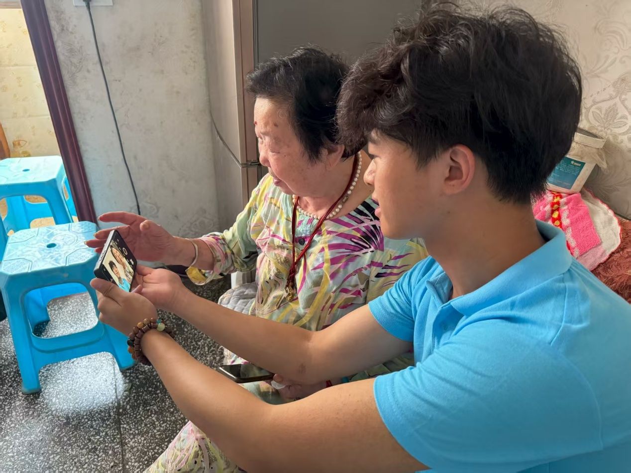 7月18日上午,“健康知识小课堂”开讲,成员们结合乡村常见健康问题,用通俗易懂的语言普及夏季防暑、饮食搭配等常识,还现场演示简易按摩手法,让健康理念融入居民日常。下午的活动更是精彩纷呈:“文艺欢乐活动”中,实践团成员与社区居民同台,歌舞明快、小品诙谐,台下掌声阵阵,社区广场成了欢乐的海洋;一旁的“智能手机小课堂”里,成员们手把手教老人操作微信视频、拍照修图、查询天气,耐心解答“怎样发红包”“如何查社保”等问题,帮老人们打破数字壁垒,让科技便利真正走进生活。