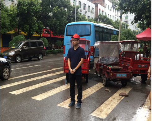 此次活动是华蓥市第四届争创活动,我校研究生与当地政府工作人员一起顶着炎炎夏日在华蓥市主要的街道、路口佩戴文明劝导的红袖章执勤,规劝违规穿行马路的市民、监察城市卫生工作。研究生挂职团的同学们按照部门的要求分开执勤,从上午8:30到下午18:00,期间以部门为单位轮岗值班。值勤期间,同学们认真工作,积极引导过路行人走安全通道过马路,主动帮助市民提、拎物品,耐心回答路人的询问,帮助市民找寻地址等,天气虽然炎热但是并没有影响到同学的工作热情。