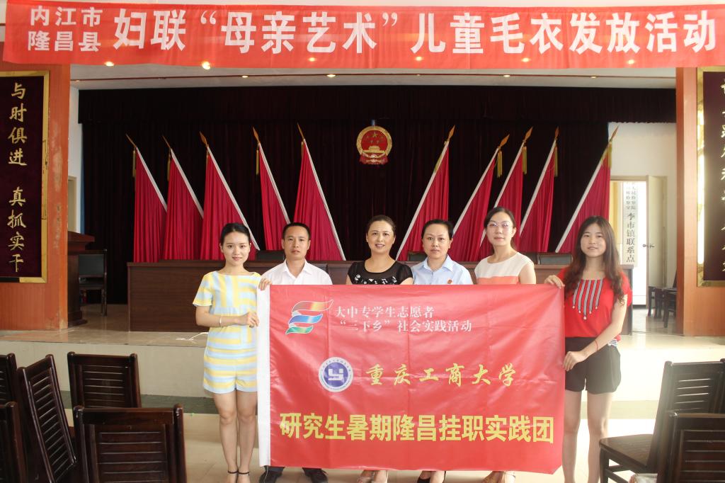 7月10日上午,我校研究生隆昌县暑期挂职锻炼社会实践团张月月和李晓红两名同学,在内江市隆昌县妇联刘鸿副主席、县妇联发展权益部部长杨云莉、县法院政治部主任范红的共同带领下,前往隆昌县李市镇慰问留守妇女和儿童,开展“母亲艺术”儿童毛衣发放活动。