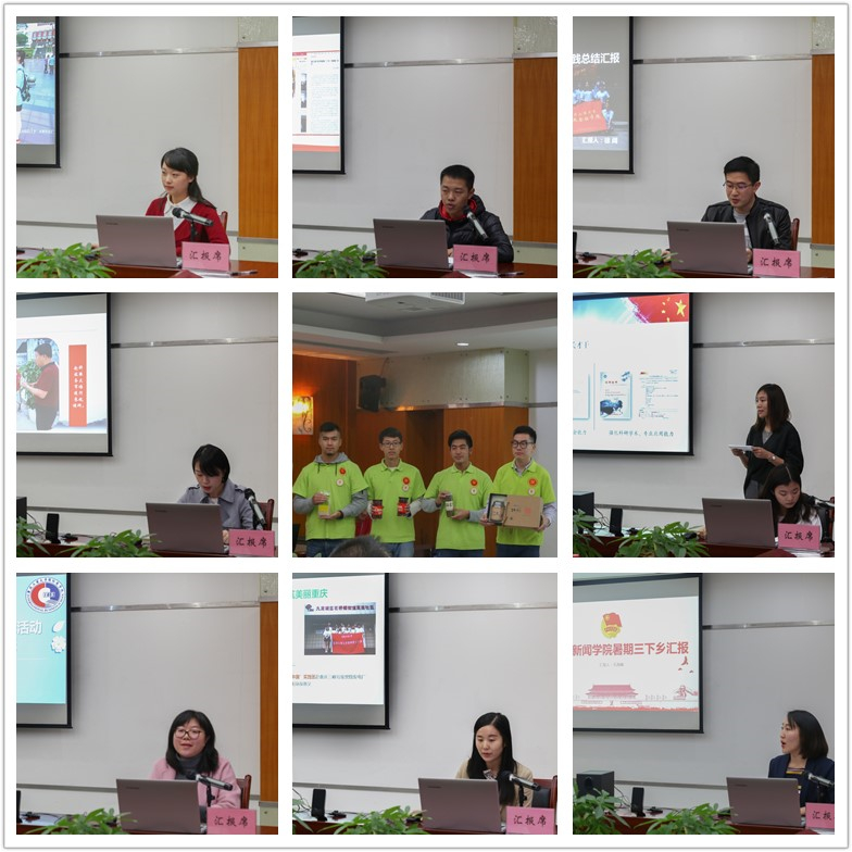 随后,各学院分团委就2017年暑期“三下乡”社会实践特色亮点工作和实践成果向大会做了汇报。汇报结束后,校团委副书记杨娟宣读了《关于表彰2017年大学生暑期“三下乡”社会实践活动先进集体和个人的决定》。经过校团委对材料进行初选和评委现场打分,最终评选出商务策划学院、财政金融学院、管理学院、研究生院、文学与新闻学院、法学院、经济学院等7个2017年暑期“三下乡”社会实践工作先进集体,计算机科学与信息工程学院星辰社会实践团队等21支先进团队,封海粟、徐阔、何祖润、孔海啸、汪洁、蒋敏、罗观等7名优秀指导教师,通识学院杜博鑫同学等674名先进个人,《关于重庆涪陵区增福乡脱贫攻坚的调查报告》(作者:财政金融学院 许慧娟)等237篇优秀调查报告(论文)。随后,李国军副校长和各位评委为获奖集体和个人颁发了奖牌和荣誉证书。