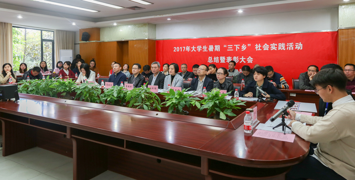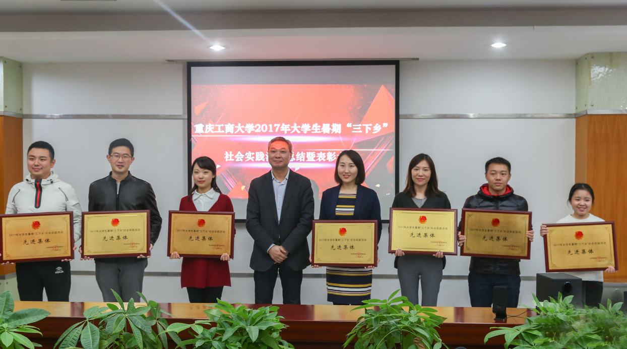10月27日10:00,我校2017年大学生暑期“三下乡”社会实践活动总结暨表彰大会在南岸校区厚德楼3020会议室举行。校党政办、组织部、宣传部、学工部、研工部、团委等部门负责人参加会议并担任评委,各学院分管学生工作的分党委(党总支)副书记,分团委负责人、校团委全体同志、部分学生干部代表参加了会议。副校长李国军出席总结表彰大会并为获奖集体颁奖。