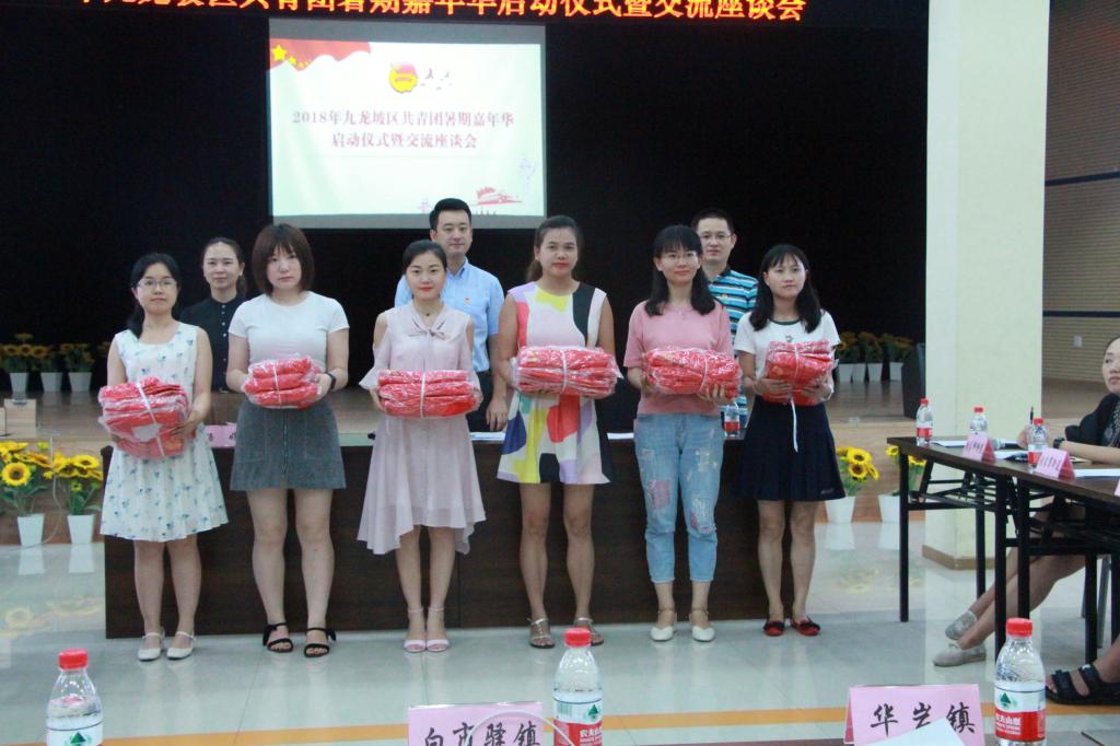 7月12日,九龙坡团区委2018年暑期嘉年华启动仪式暨交流座谈会在九龙坡青少年宫会议室举行。校团委杨娟副书记、志愿者代表受邀参与,九龙坡团区委书记余立、副书记王博、九龙坡区各镇街代表参加了活动。