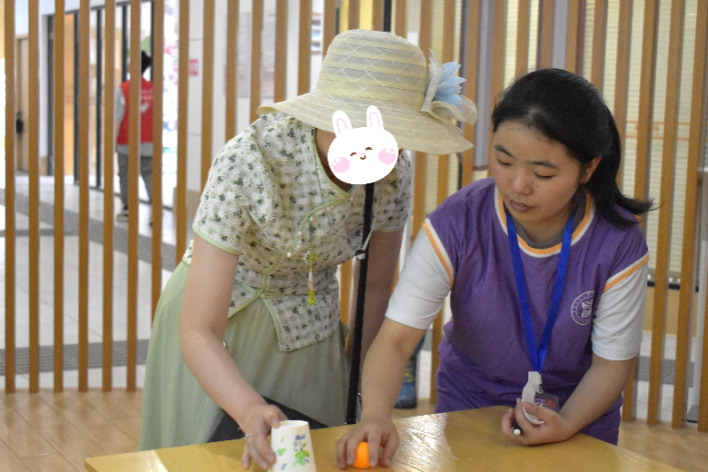 活动开始前,志愿者提前到达现场布置并引导残疾人有序入场。主持人致辞后,活动正式拉开序幕。在志愿者的带领下,残障人士被分为两组,通过轻松有趣的热身运动,拉近彼此间的距离,为后续活动营造出温馨融洽的氛围。运动会设置了多个趣味十足的项目。首先是“飞跃乒乓”环节中,参与者需要在肢体不接触乒乓球的前提下,利用道具将乒乓球抛进纸杯中。每当乒乓球精准入杯,现场便响起热烈的掌声。随后的游戏“桌面冰壶”环节,不少参与者都因力度把控不当将“冰壶”滑出桌面,但他们毫不气馁,一次次拾起“冰壶”重新尝试。“小球进洞”环节里,大家全神贯注,想方设法让乒乓球顺着桌面滑进另一端的纸杯,现场气氛热烈,笑声不断。而“光盘拔河”更是将活动推向高潮,光盘置于彩虹圈中心,双方通过晃动彩虹圈使光盘靠近对方,紧张刺激的比拼让现场气氛持续升温。一轮游戏过后,大家仍意犹未尽,在志愿者陪伴下又进行第二轮的较量。游戏结束后,志愿者为积分高的一组颁发奖品。活动尾声,残疾人与志愿者合影留念,为这场充满爱与温暖的趣味运动会画上圆满句号。