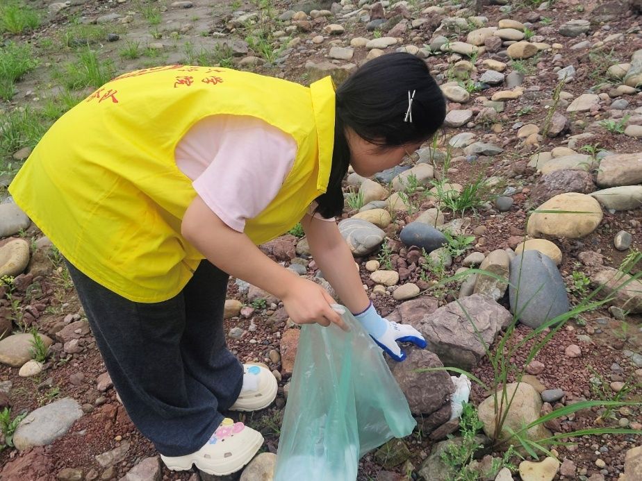 活动当天,正午的阳光泼洒在河岸石阶上,志愿者们早早地集合抵达活动现场。有的志愿者根据各河段垃圾污染程度分发工具,有的志愿者按河段划分着小组,有的志愿者撸起袖子、扎好头发时刻准备行动。守护碧水清流行动正式开始,“咔哒”,钳子夹起易拉罐的声响与流水声交织成曲。志愿者们沿着河岸俯身前行,不放过任何一处卫生死角:藏在深草丛中的塑料瓶被轻轻拽出,嵌在石缝里的卫生纸和糖果纸被发现清理,就连沉在浅滩的碎玻璃也被小心翼翼地归集到垃圾袋中。