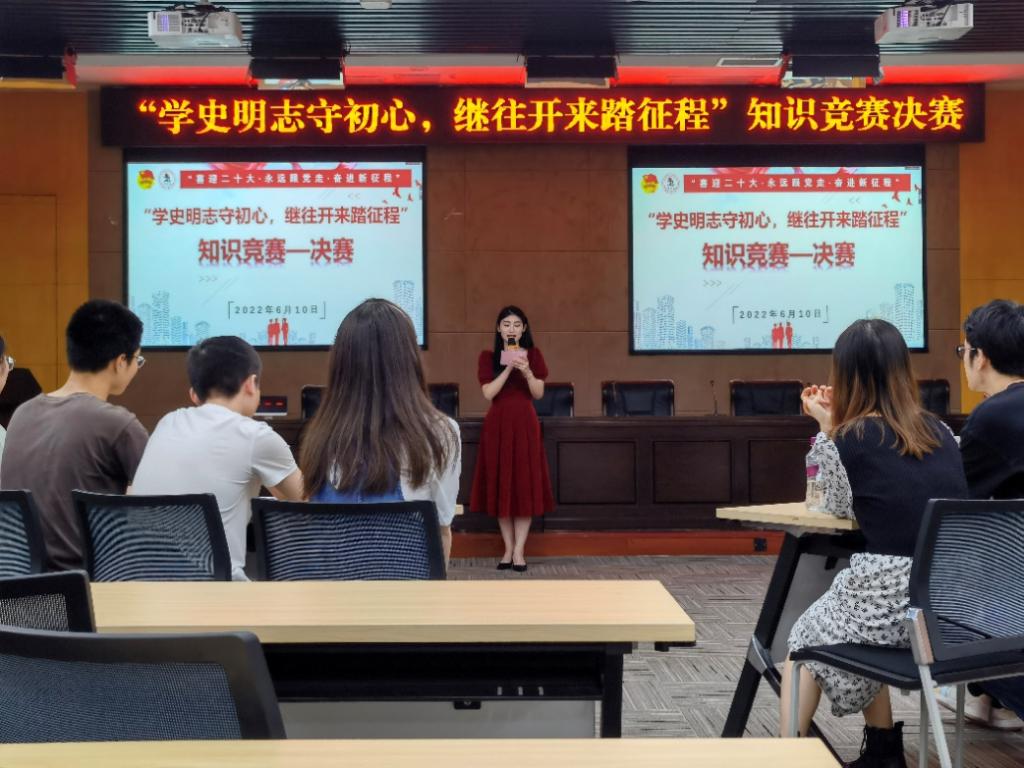 为迎接党的二十大胜利召开,庆祝建团百年,进一步营造健康向上的校园学术氛围,展现重工商大学子昂扬向上的精神风貌,6月10日下午,由校团委主办、校学生会承办的“学史明志守初心,继往开来踏征程”知识竞赛决赛在图书馆多功能会议室顺利举办。