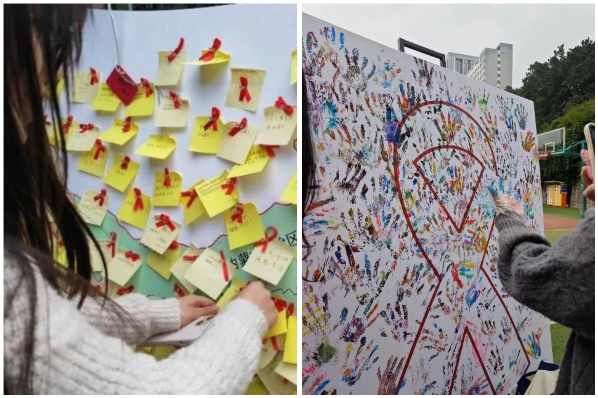 活动共分为爱心手印、祝福寄语、防艾问答、心灯不灭4个部分。志愿者制作防艾主题海报,面向全校学生宣传艾滋病及其防御的相关知识。同学们在现场学习了解后,领取防艾红丝带张贴到展板上,盖下手印,留下印记,完成打卡即可获得相应的印章,集齐所有的印章可成为防艾宣传志愿者。祝福寄语部分,同学们在便利贴上写下自己对艾滋病人的祝福寄语,向艾滋病人表达自己的关心,传递一份温暖。防艾问答环节,志愿者们向同学们发放预防艾滋病的相关知识的题单,同学们参与答题。心灯不灭活动中,志愿者们挂起提前制作好的艾心灯及灯谜,艾心灯的光芒连成了一线,参与者络绎不绝,热情满满。