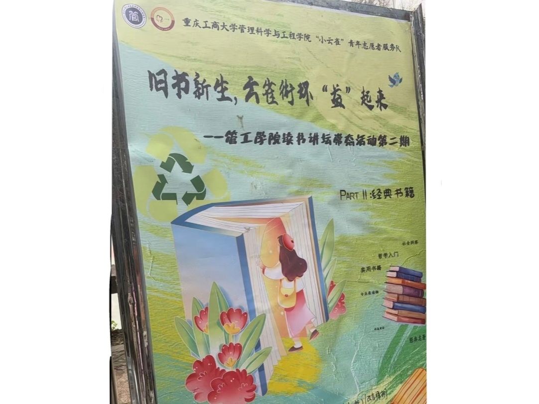 旧书新生,云雀衔绿循环“益”起来——管理科学与工程学院“小云雀”青年志愿者服务队长期文明实践活动